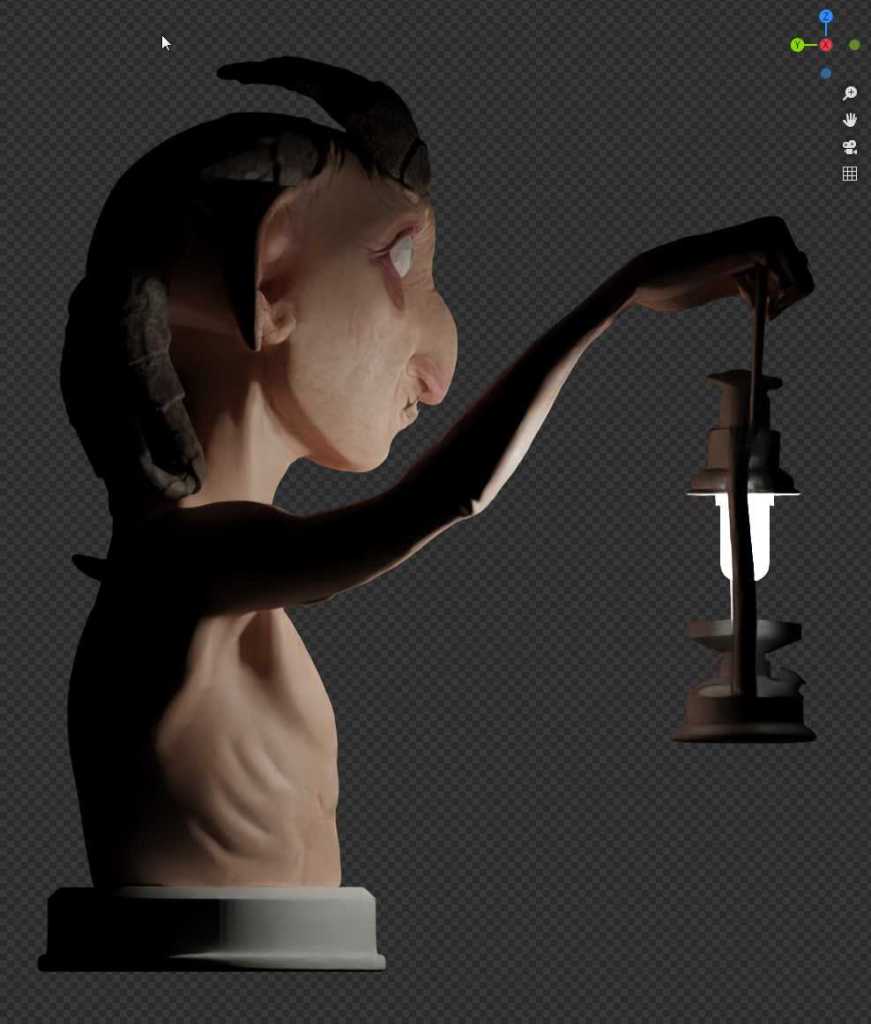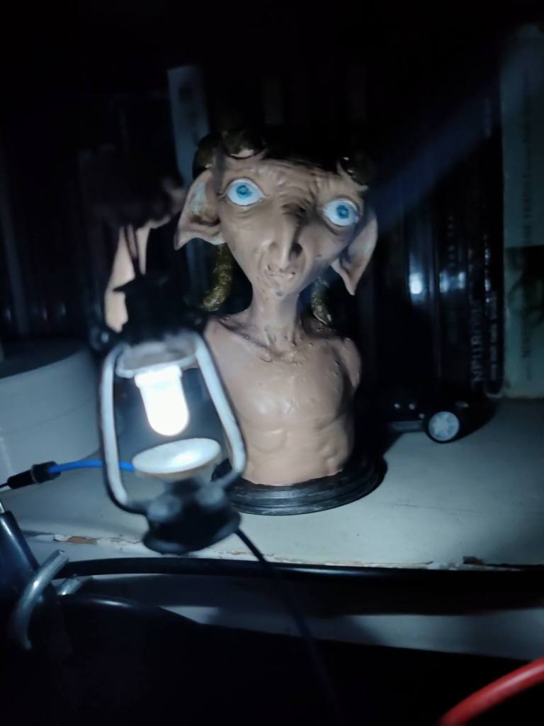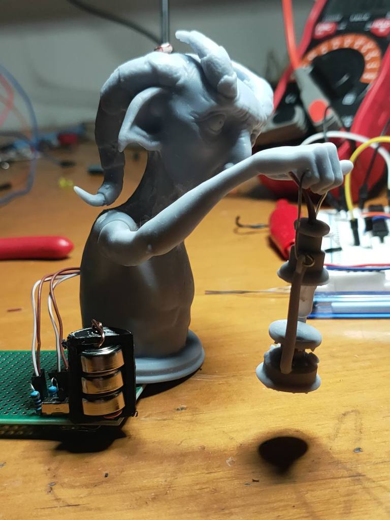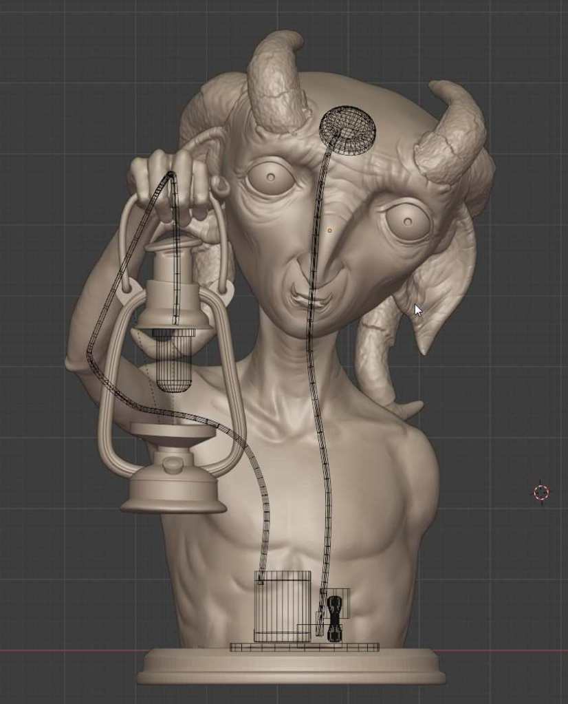 Sembrava che il modello fosse finito, ed invece viene fuori l’idea di fargli afferrare una lampada ad olio e farlo diventare una vera lampada da tavola.
