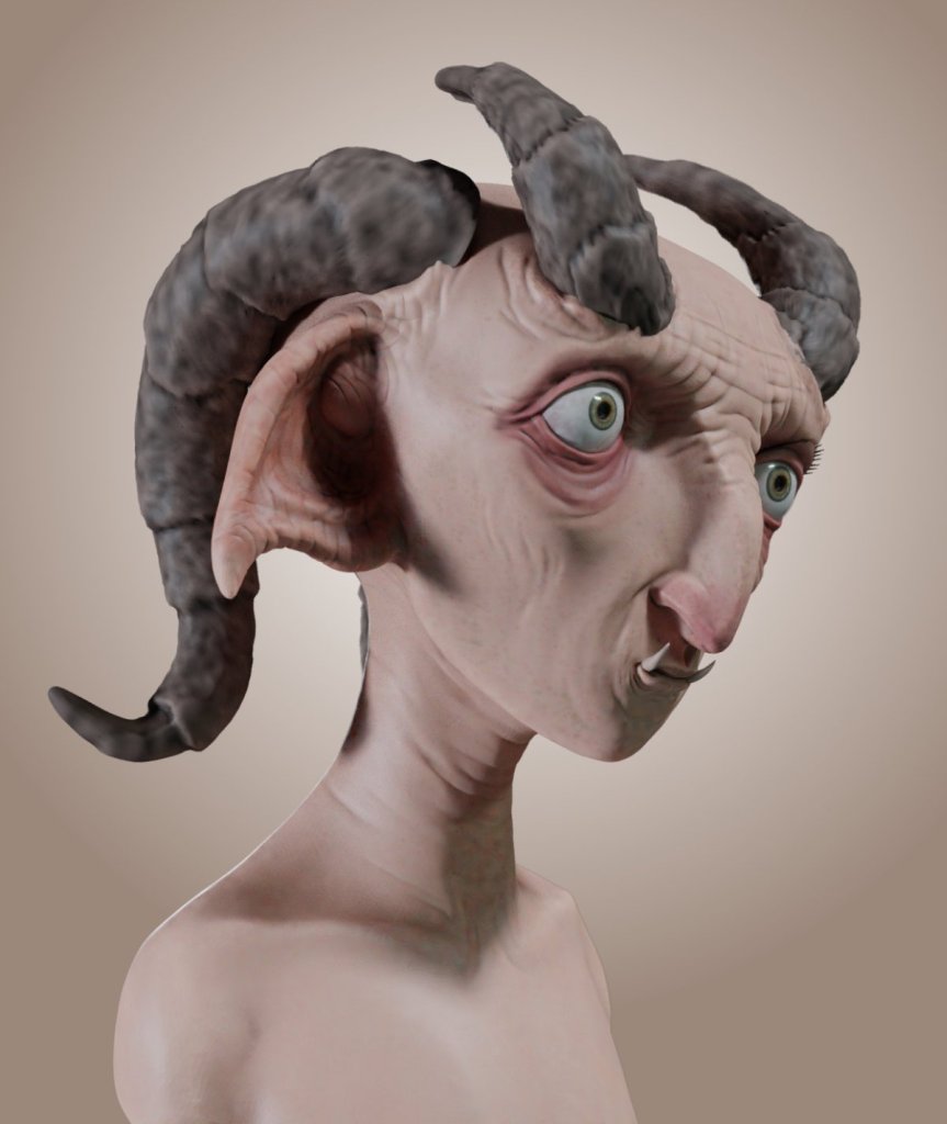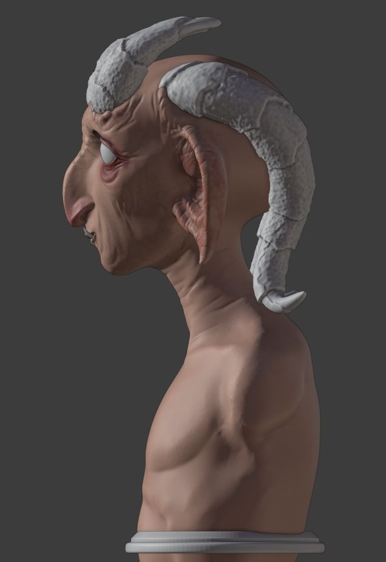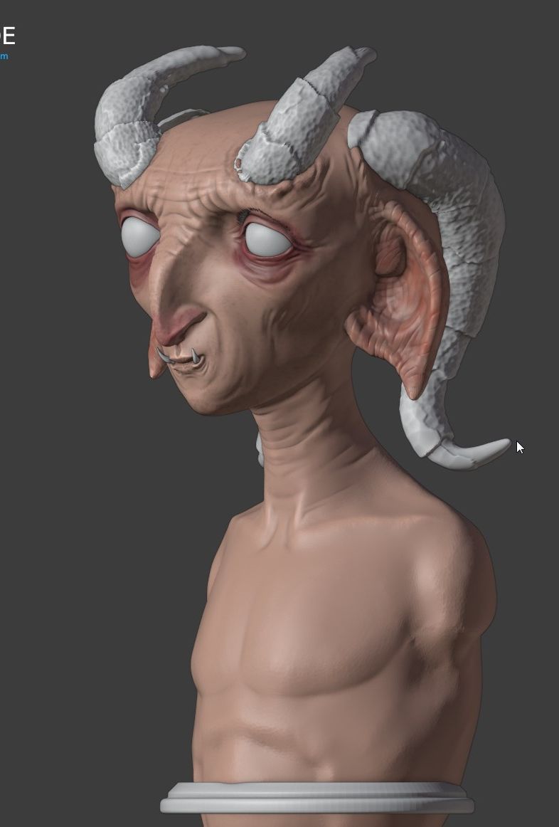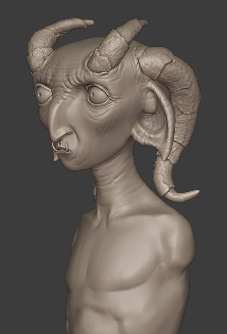 Poi uno sculpt 3d fatto con Blender, finalmente, dopo tanto tempo passato solo con 3dCoat per fare cose a risoluzione altina. Le corna -capelli-treccie sono dei tubi deformati con 2-3 displace quasi a caso.