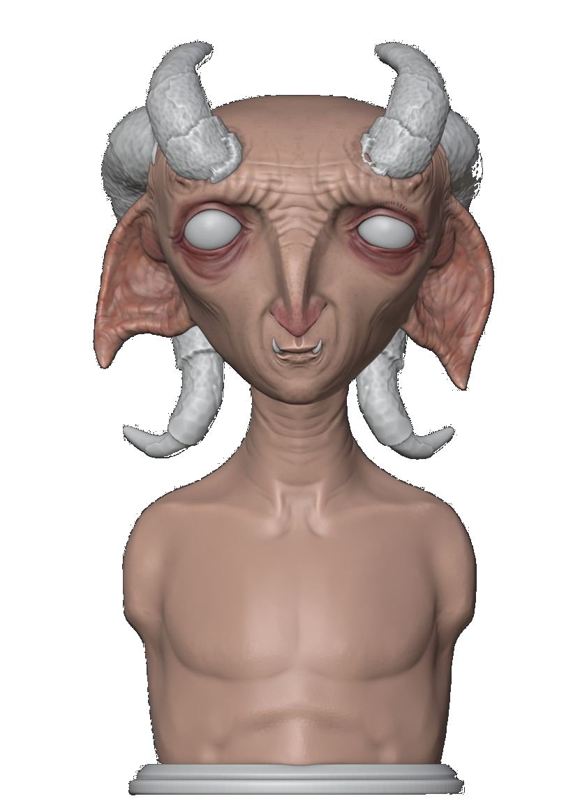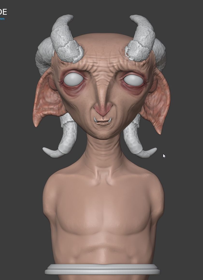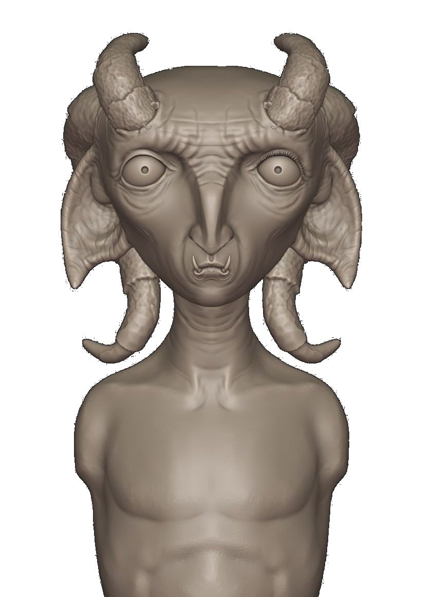 Poi uno sculpt 3d fatto con Blender, finalmente, dopo tanto tempo passato solo con 3dCoat per fare cose a risoluzione altina. Le corna -capelli-treccie sono dei tubi deformati con 2-3 displace quasi a caso.
