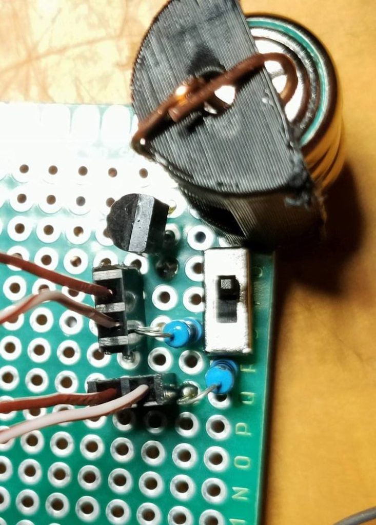 Per far si che si accenda da se, dentro c’è questo circuitino molto semplice, il classico “auto light on/off” con ldr e transistor che “reagisce” alla luminosita, quando l’ ldr va in ombra acccende il led.