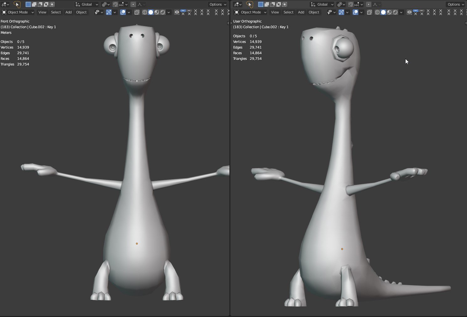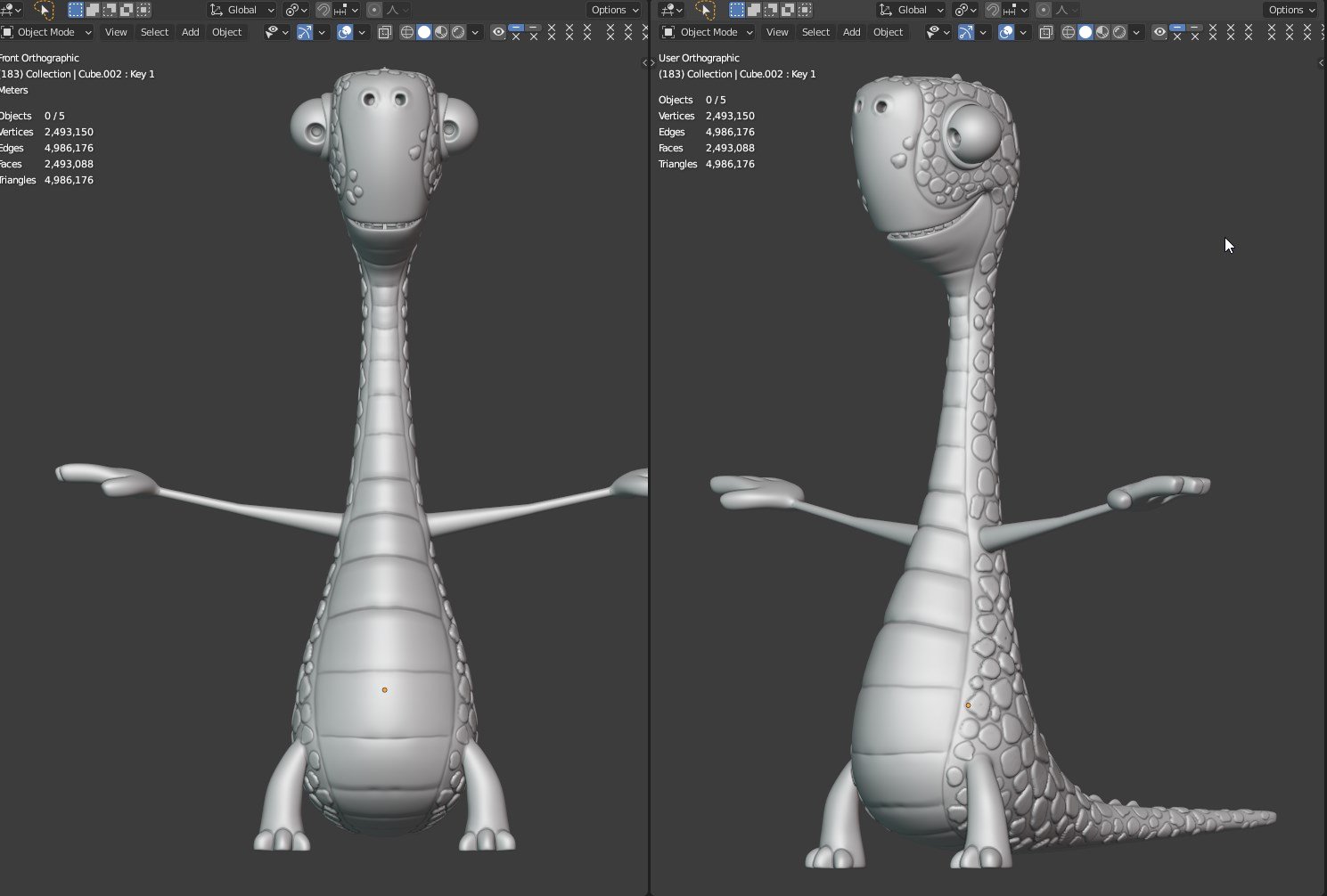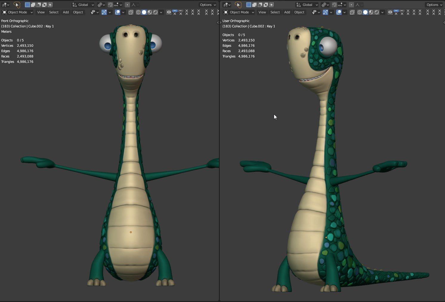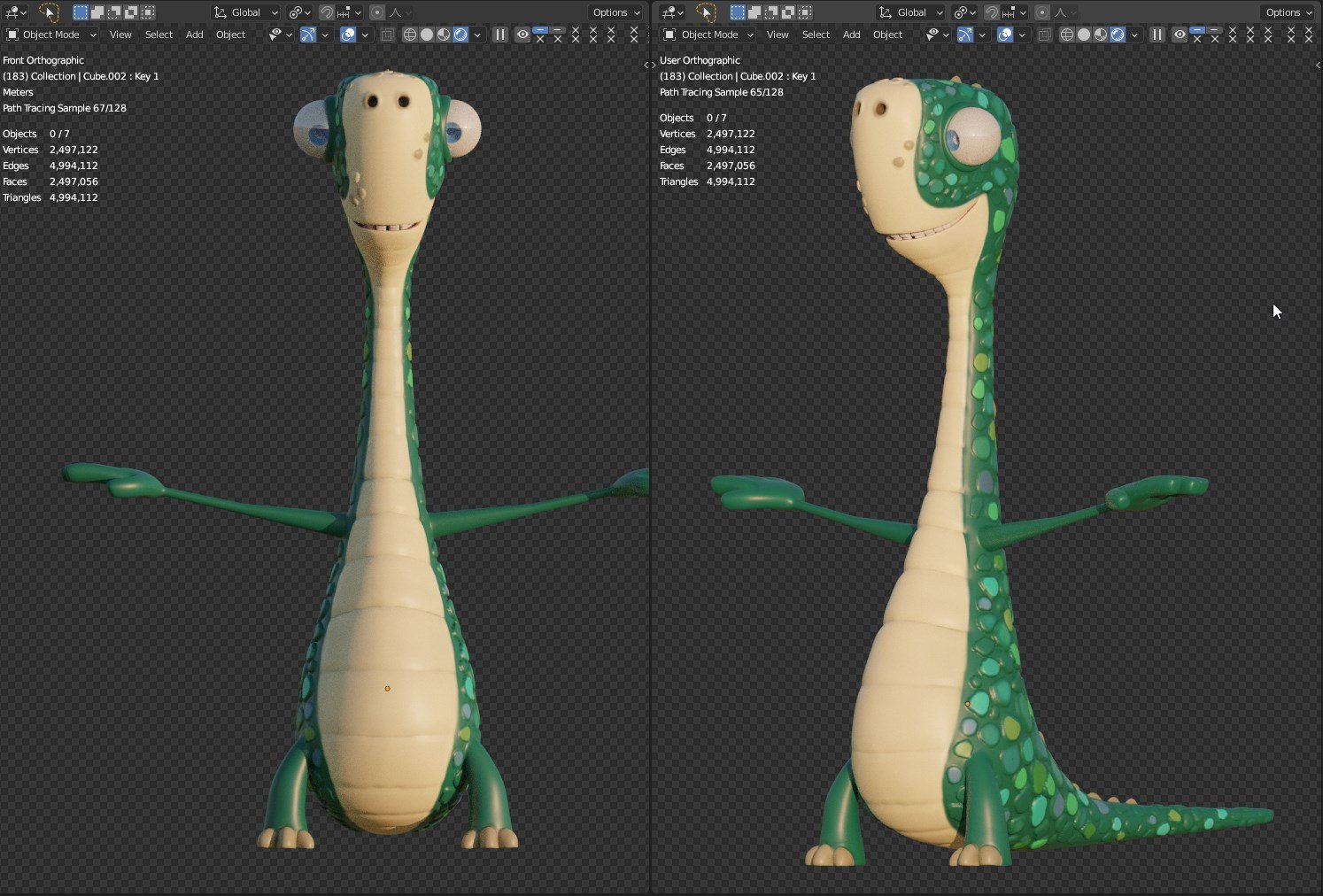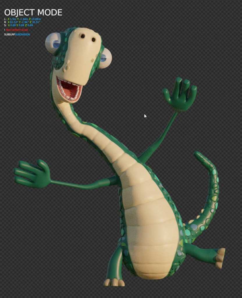 Uno dei simpaticissimi personaggi del cartone animato Gigantosaurus modellato in poligonale con Blender, poi dettagliato, testurizzato e posato alla meno peggio.