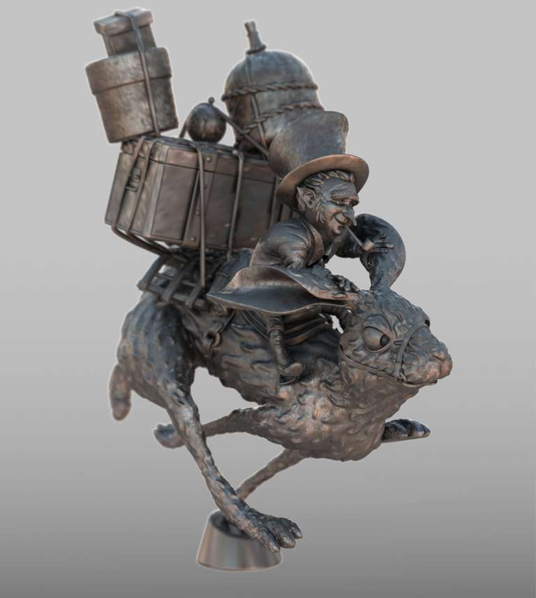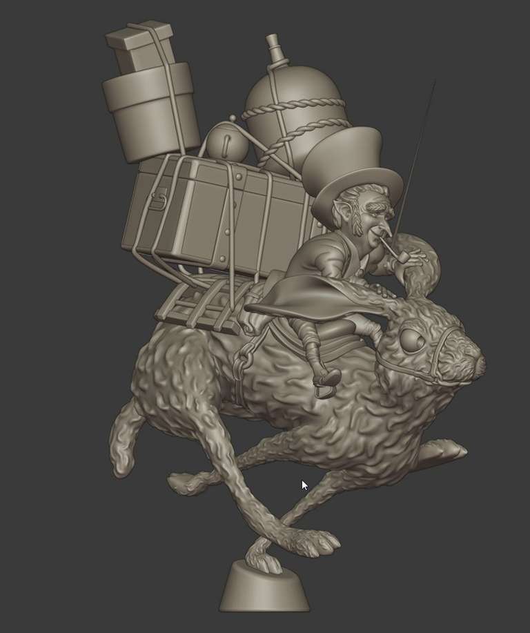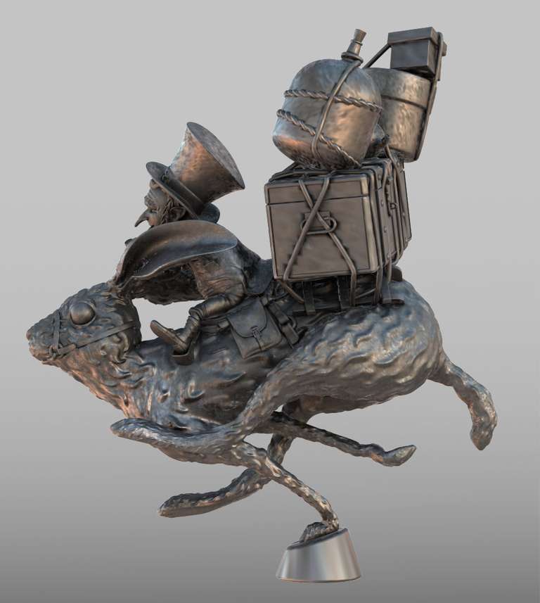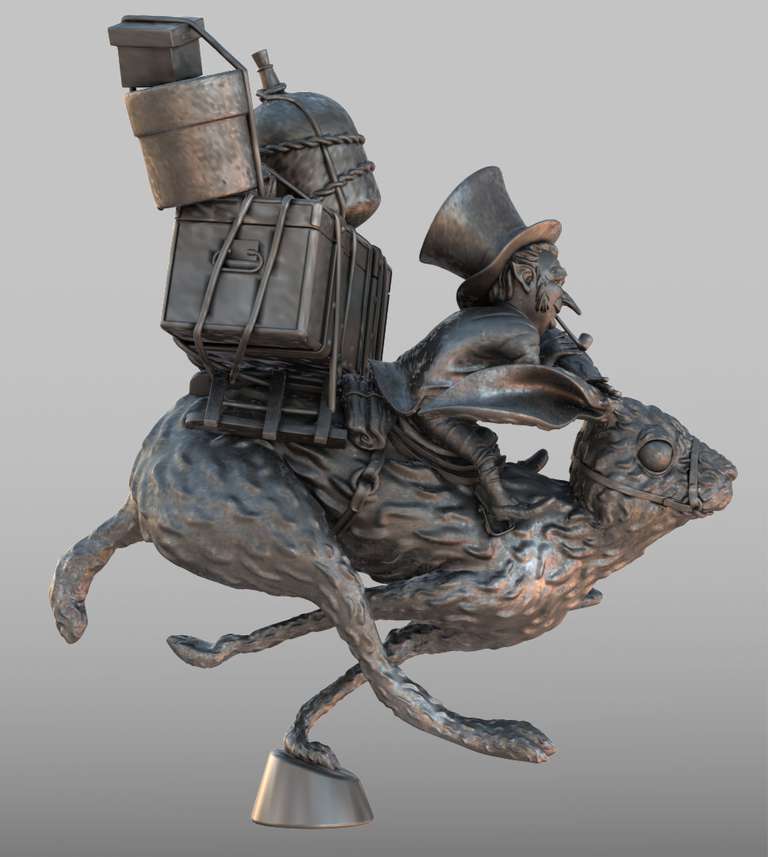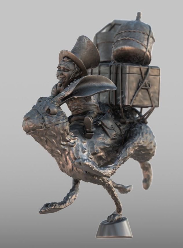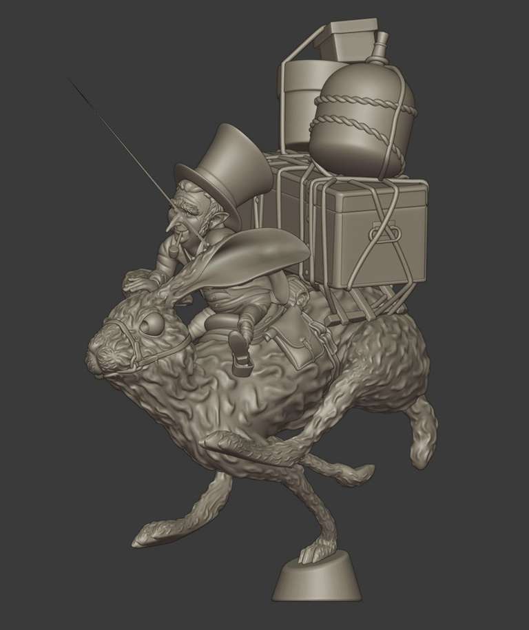 Uno dei bellissimi personaggi disegnati da Jean Baptiste Monge, modellato in poligonale con Blender, poi scolpito, posato e stampato.