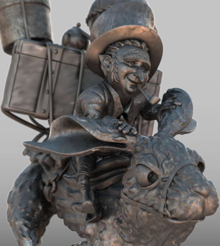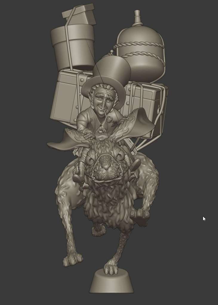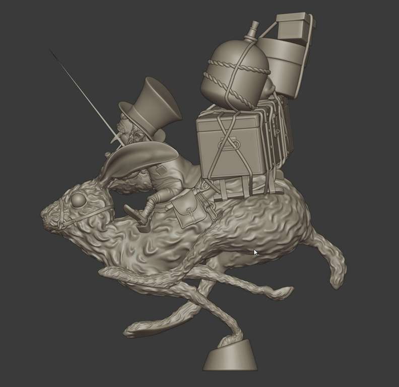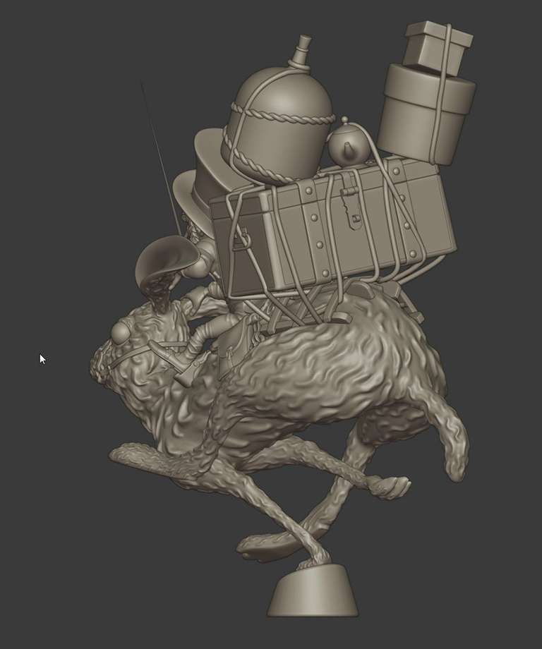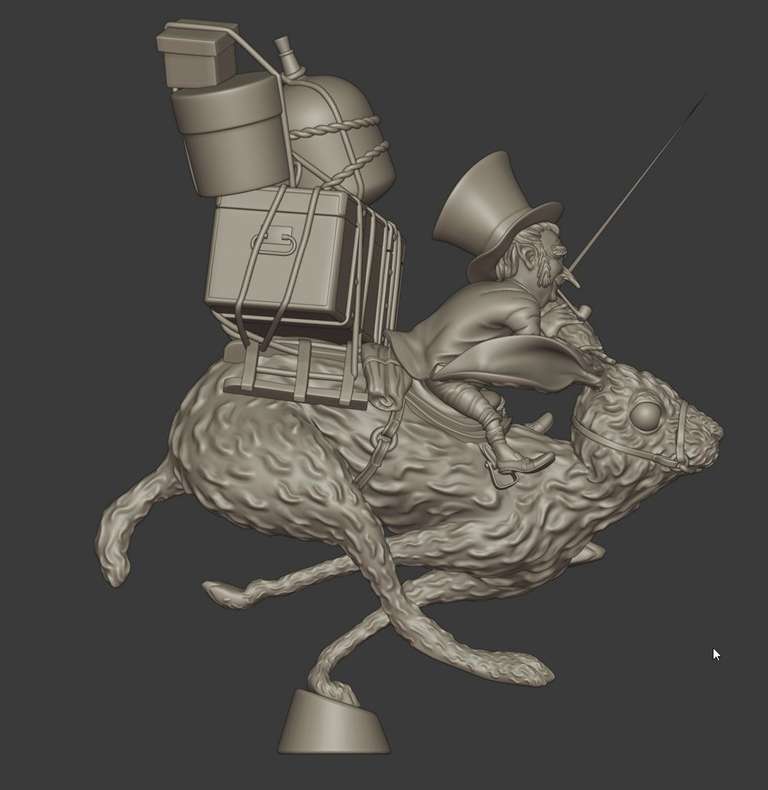 Uno dei bellissimi personaggi disegnati da Jean Baptiste Monge, modellato in poligonale con Blender, poi scolpito, posato e stampato.