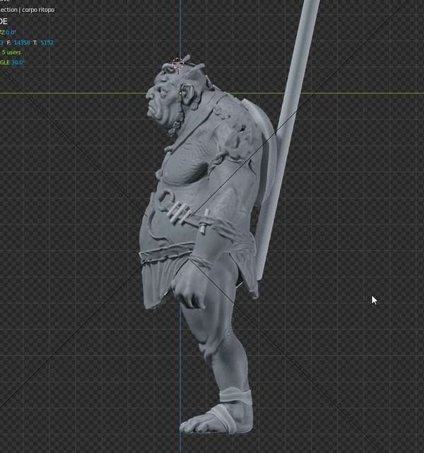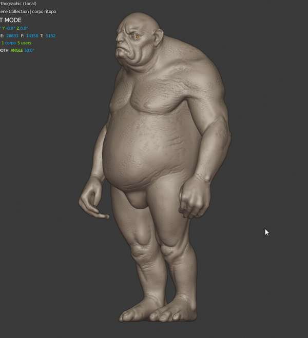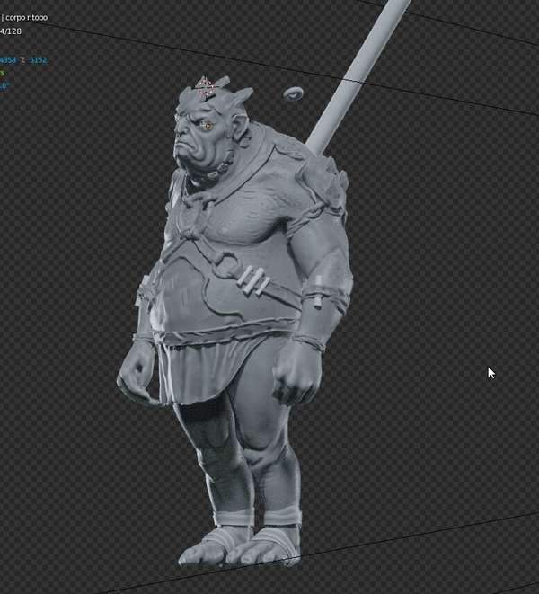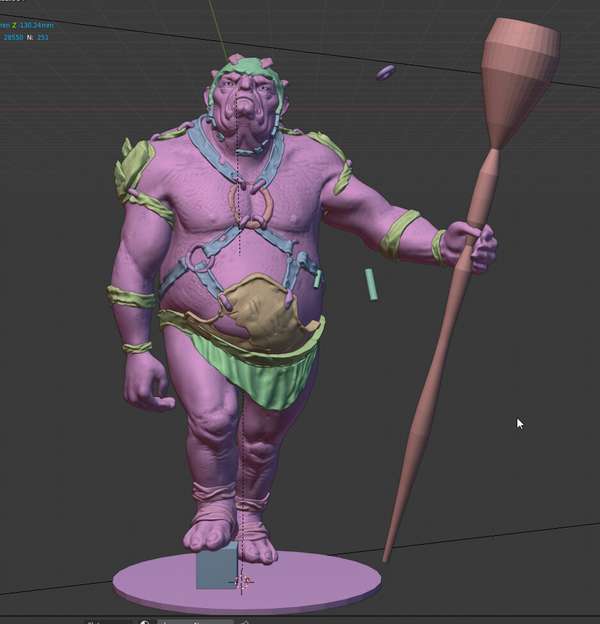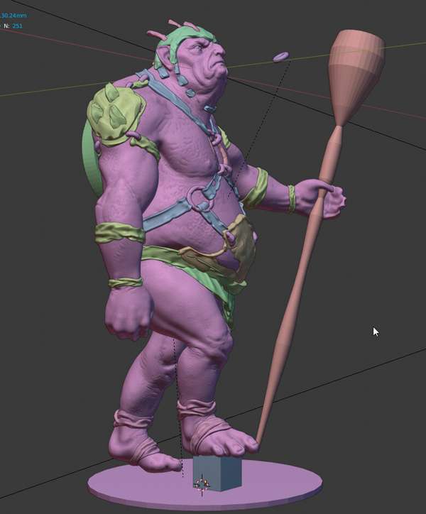 Un troll scolpito direttamente in alta risoluzione in Blender, posato col Mesh Deform e stampato.